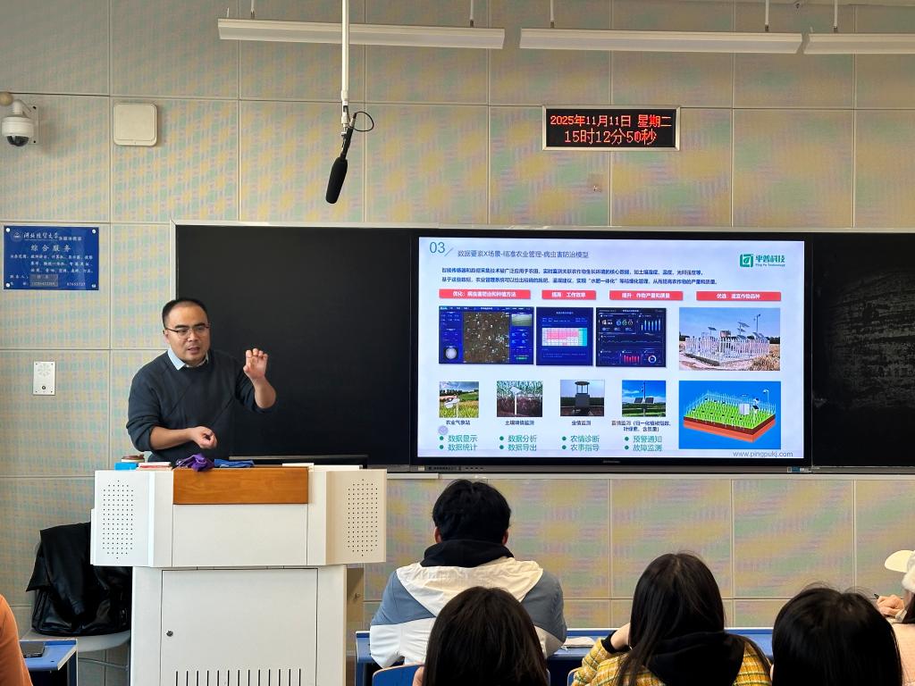 2025-11为使研究生教育紧密对接产业前沿,2025年11月11日,2007so太阳集团邀河北平普科技有限公司技术总监冀广宇走进研究生课堂,举办了一场以“AI+智慧农业”为主题的技术分享会。