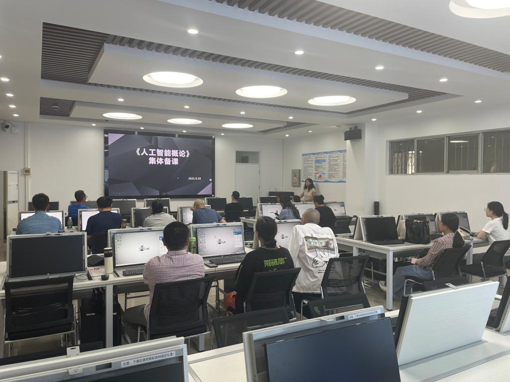 9月29日,2007so太阳集团应用教研室与数据库教研室全体教师齐聚第三教学楼C115机房,开展了本学期《人工智能概论》课程第三次集体备课活动。本次活动聚焦人工智能生成内容(AIGC)技术在教学中的融合应用,积极探索智能时代背景下课堂教学的新路径与新模式。