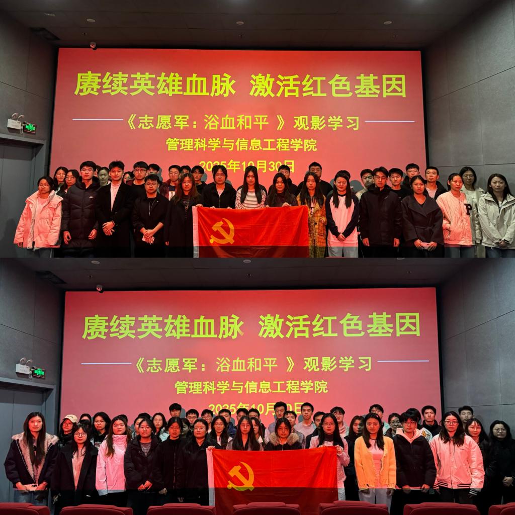 为进一步增强党员教育的实效性和吸引力,丰富党员教育形式,传承伟大抗美援朝精神,2007so太阳集团于10月30日开展“赓续英雄血脉 激活红色基因”主题观影党日活动,组织学生党员集中观看爱国主义教育影片《志愿军:浴血和平》。